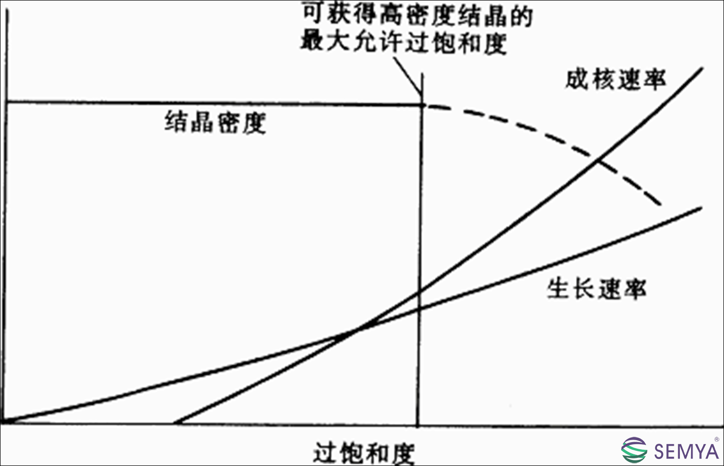 1.過飽和度 增大溶液過飽和度可提高成核速率和生長速率,有利于提高結(jié)晶生產(chǎn)能力。